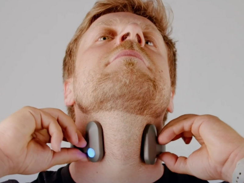 Gently position the device around your neck, making sure it sits comfortably and securely.
