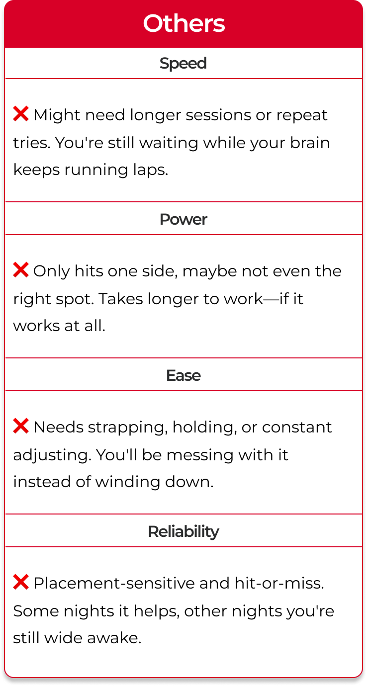 Pulsetto sits directly on your neck, where the vagus nerve is closest to your skin. It has electrodes on both sides for stronger, more even stimulation, helping it work faster and more effectively.